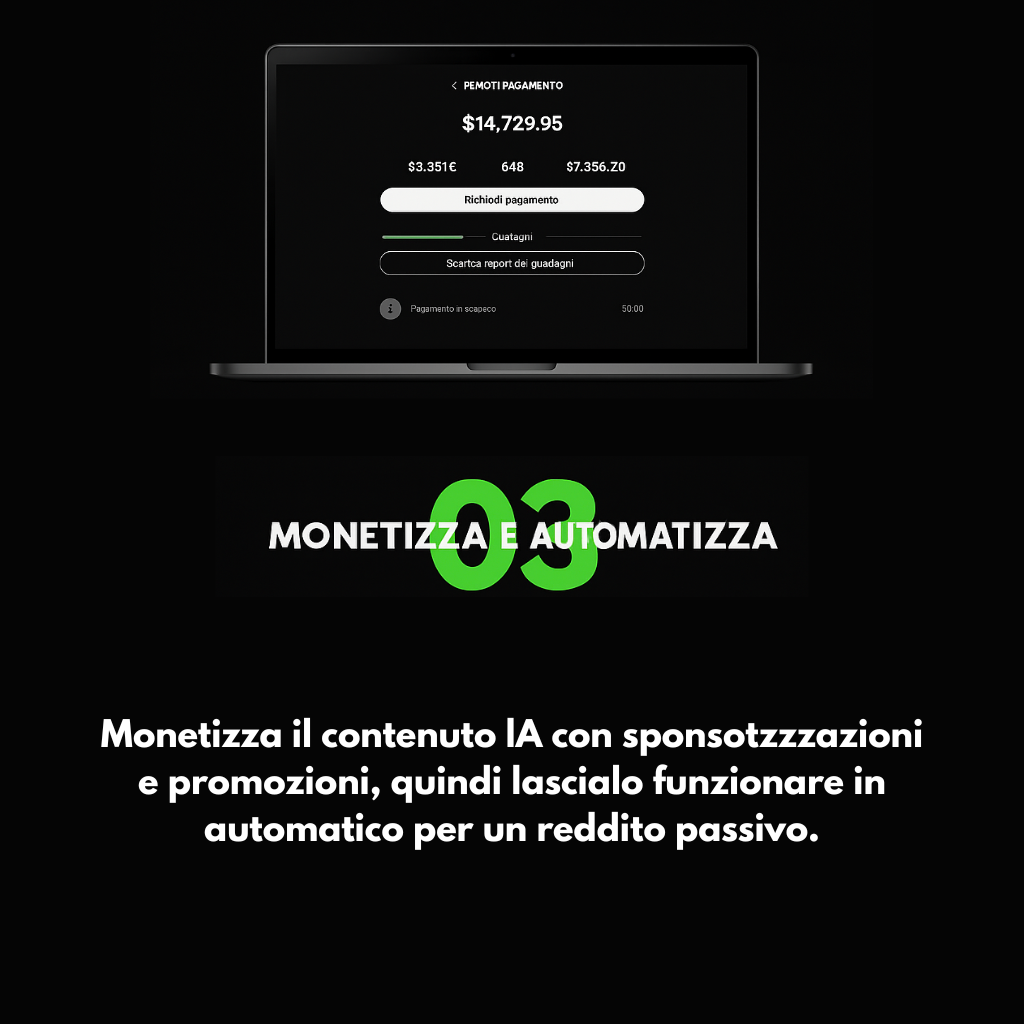 In soli tre semplici passaggi puoi creare, monetizzare e automatizzarei tuoi modelli di intelligenza artificiale per ottenere entrate senza sforzo.