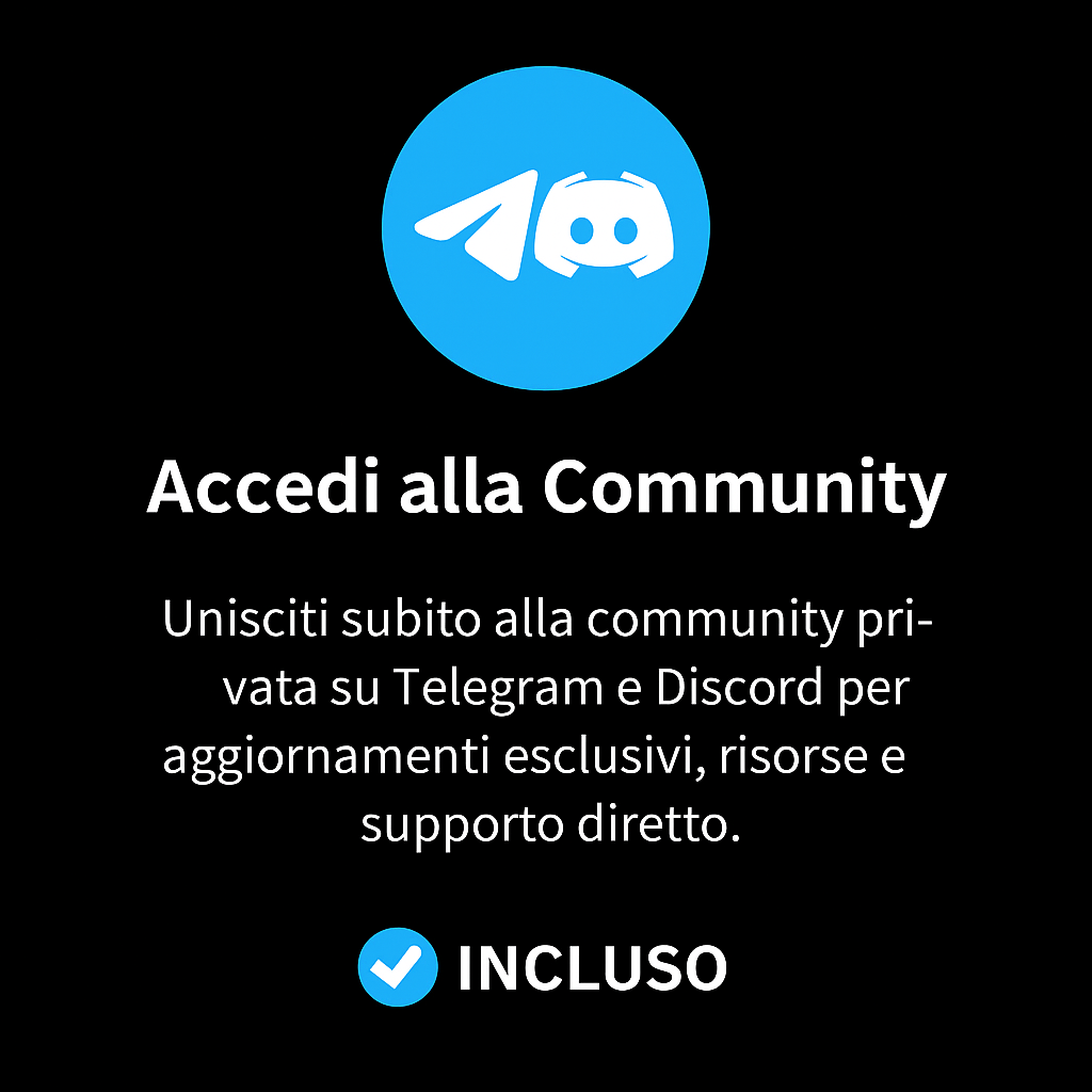 Una volta acquisito la guida, ti verrà inviato un email per entrare nella nostra community.
